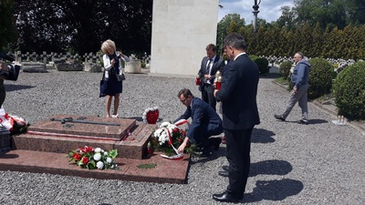 Wizyta prezesa IPN Jarosława Szarka wraz z delegacją na Cmentarzu Orląt we Lwowie. -