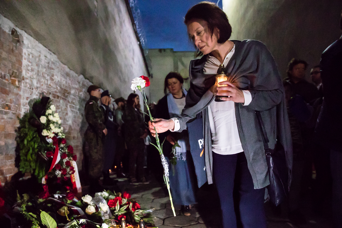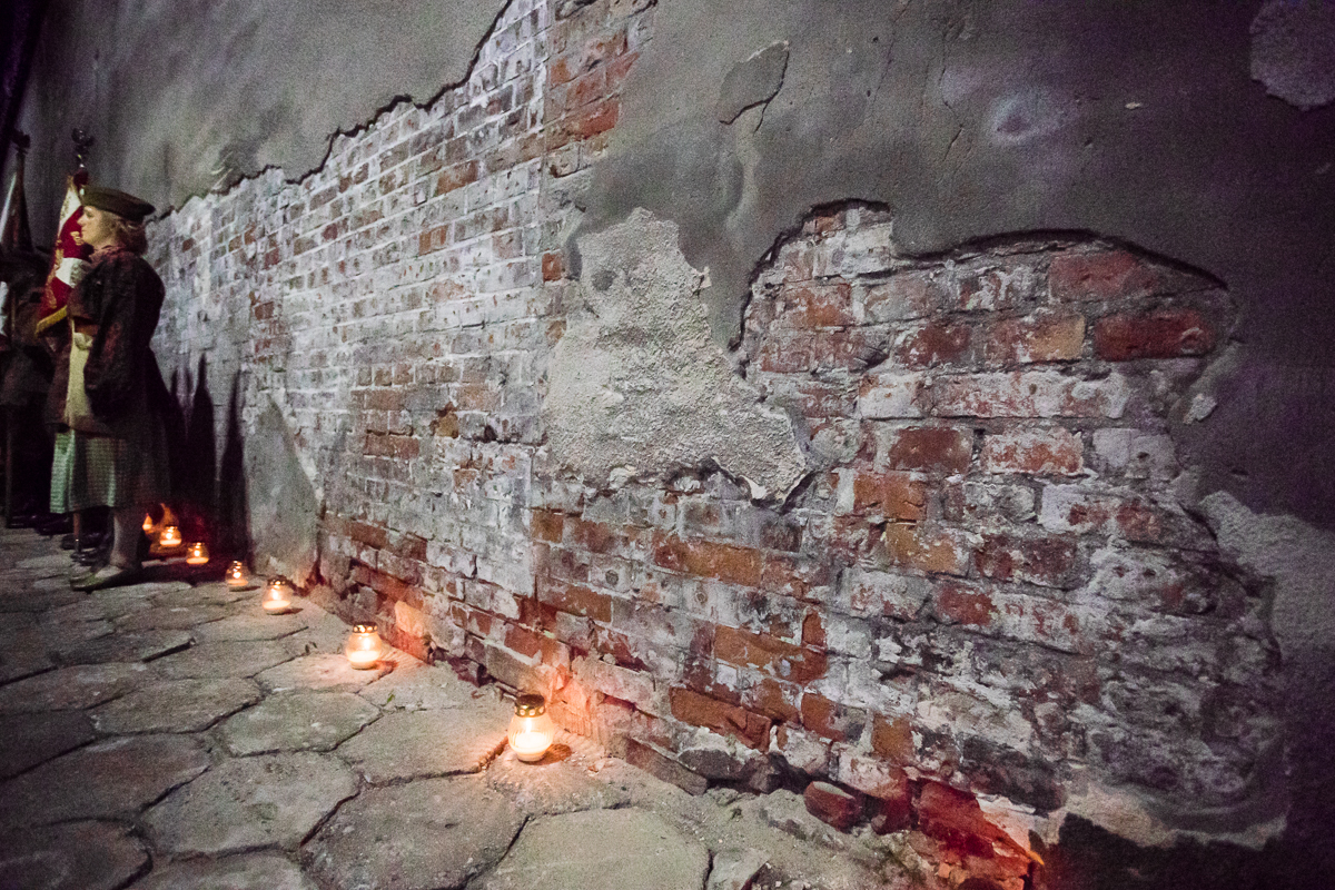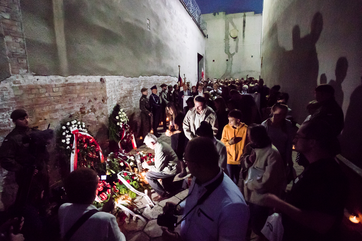 Najbardziej uroczystą część obchodów rozpoczęło wspólne przejście uczestników pod ścianę straceń. O godz. 21:30 oddano hołd Rotmistrzowi – w godzinę jego śmierci.