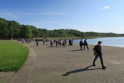 Wizyta rozpoczęła się wieczornym piątkowym spotkaniem przy jeziorze – miejscu, do którego wrzucano prochy Więźniarek – krótkim wprowadzeniem i wspólną modlitwą.