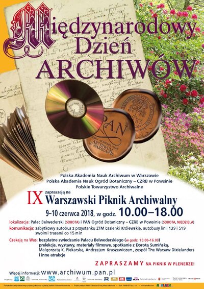 W dniach 9–10 czerwca 2018 r. odbył się IX Warszawski Piknik Archiwalny. Impreza została zorganizowana z okazji Międzynarodowego Dnia Archiwów, Archiwum IPN brało udział w pierwszym dniu imprezy. Pokaz konserwacji materiałów archiwalnych, konkursy historyczne, gry edukacyjne, kolorowanki historyczne dla dzieci to oferta przygotowana przez pracowników Archiwum IPN dla odwiedzających .