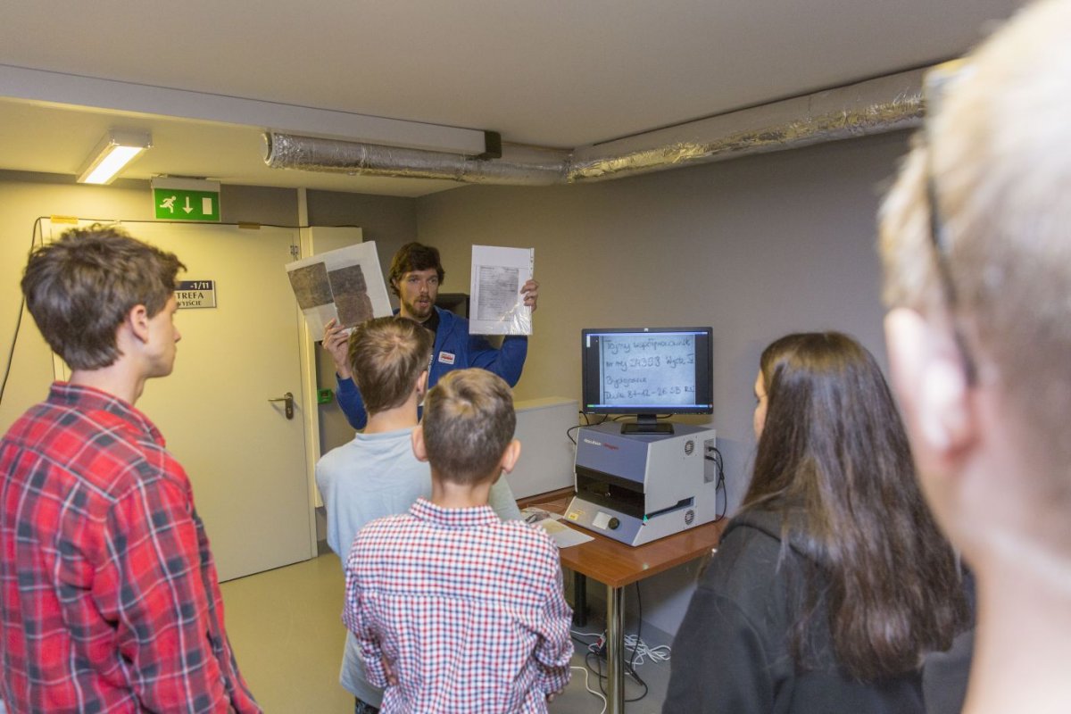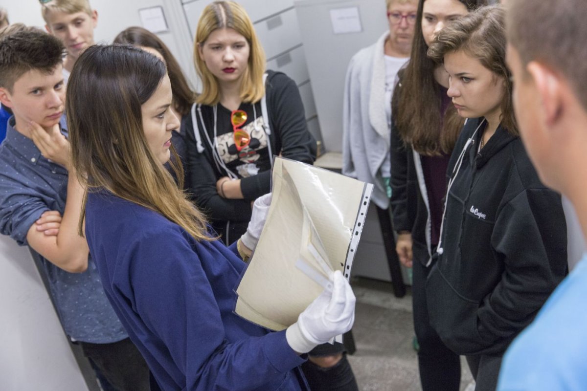 Podczas wizyty uczniowie dowiedzieli się o zadaniach i zasobie Archiwum, odwiedzili magazyny i pracownię konserwacji akt. Archiwiści zaprezentowali gościom przykładowe dokumenty z zasobów Centrum Udzielania Informacji o Ofiarach II Wojny Światowej i opowiedzieli o zasadach wykonywania fotografii operacyjnych przez służby PRL. Dodatkową atrakcję stanowił pokaz zasad działania videokomparatora, wykorzystywanego do odczytywania „zanonimizowanych" zapisów na dokumentach. Na zakończenie spotkania uczniowie mieli możliwość sprawdzenia swoich wiadomości podczas quizu archiwalnego z atrakcyjnymi nagrodami.