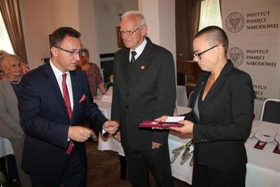 W imieniu Prezydenta RP Andrzeja Dudy aktu dekoracji dokonał dr Dariusz Rogut, dyrektor Oddziału IPN w Łodzi.