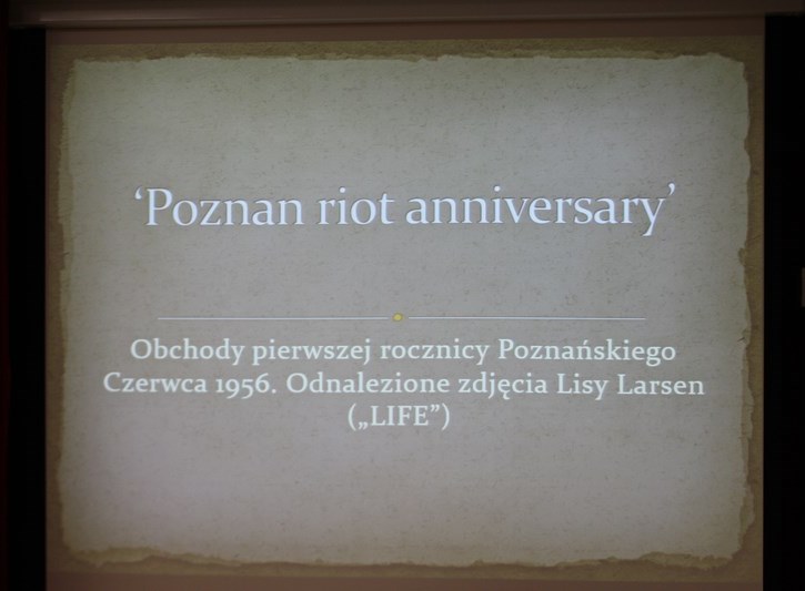 Bunt robotników Poznania długo wzbudzał wielkie zainteresowanie Zachodu, czego dowodzi m.in. obecność na tzw. procesach poznańskich przedstawicieli największych światowych redakcji. Pochodną owej fascynacji „miastem buntu” jest wizyta wziętej amerykańskiej dziennikarki pracującej dla poczytnego magazynu „Life”, która w pierwszą rocznicę Czerwca z pełnym rozmysłem przyjechała do Poznania. Zrobiła tutaj ok. 20 unikatowych, kolorowych zdjęć dokumentujących fakt upamiętnienia Czerwca 1956 i jego ofiar przez mieszkańców Poznania. Ostatecznie na łamach pisma ukazała się tylko jedna poznańska fotografia („Life”, 15 VII 1957 r.). Reszta filmowej rolki trafiła do redakcyjnego archiwum liczącego miliony zdjęć i spoczywała tutaj przez kolejnych kilkadziesiąt lat. Dzięki projektowi digitalizacji fotograficznych zasobów magazynu „Life” zdjęcia Lisy Larsen opisane: „Poznan riot anniversary”, trafiły do sieci, gdzie odnalazł je dr Piotr Grzelczak z Oddziałowego Biura Badań Historycznych IPN w Poznaniu. Nieznane dotąd fotografie dokumentujące obchody pierwszej rocznicy Poznańskiego Czerwca 1956 mają fundamentalne znaczenie dla zrozumienia fenomenu walki o jego pamięć toczonej w PRL pomiędzy stroną społeczną a komunistyczną władzą.