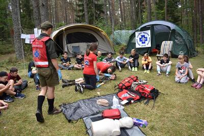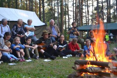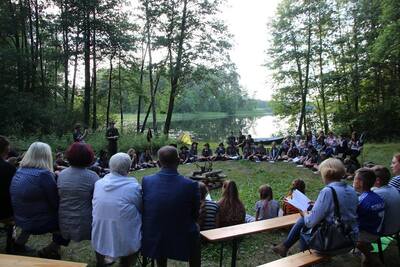 We wtorek 10 lipca br. na nasz obóz przyjechały dzieci z Litwy, pochodzące z rodzin polskich, uczestniczące w obozie historycznym prowadzonym przez pracowników Instytutu Pamięci Narodowej. Na uroczyste ognisko inaugurujące to przedsięwzięcie zaprosiliśmy władze samorządowe rejonu Święciany, przedstawicieli Związku Polaków na Litwie i naszych miejscowych przyjaciół. Ognisko dało okazję do przedstawienia idei harcerskiej i programu obozu historycznego, wprowadziło też polskie dzieci w atmosferę obozowego życia. Obóz historyczny rozpoczął się zajęciami pt. „Drogi do Niepodległości”, omówiono symbole historyczne z wykorzystaniem gry IPN „Znaj Znak”, w programie znalazły się także warsztaty teatralne z życia Józefa Piłsudskiego oraz turniej gier planszowych prowadzony przez pracowników IPN Karolinę Kolbuszewską, Bogusława Becka i Marka Wierzbickiego. Nie zabrakło szkolenia medycznego z wykorzystaniem elementów udzielania pierwszej pomocy przedmedycznej, prowadzonego przez ratowników Harcerskiego Ochotniczego Pogotowia Medycznego.