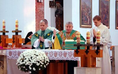 Uroczystość poprzedziła Msza św. celebrowana przez księdza biskupa Edwarda Janiaka oraz księdza biskupa Jana Kopca z diecezji opolskiej w kościele Najświętszej Marii Panny na Piasku.