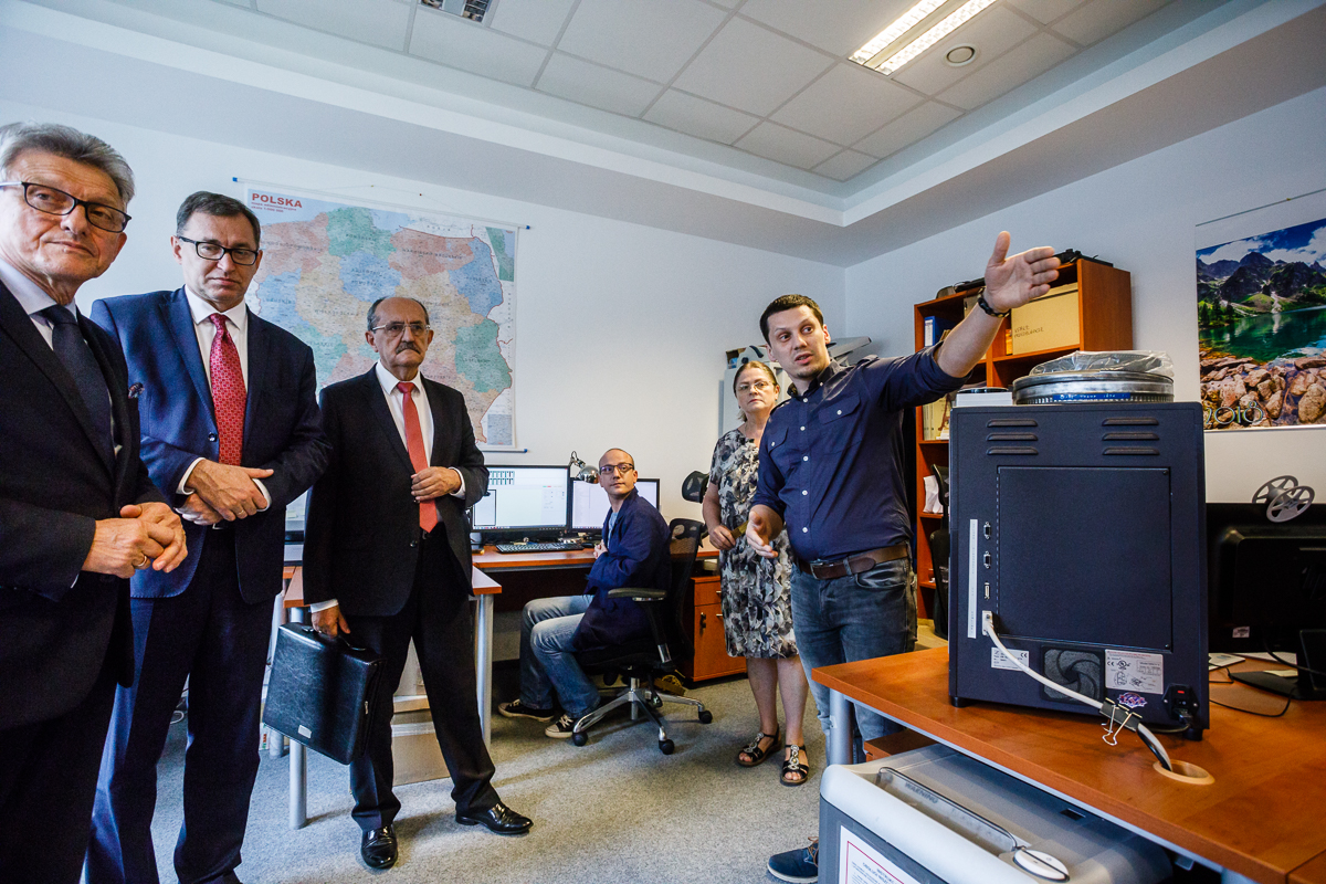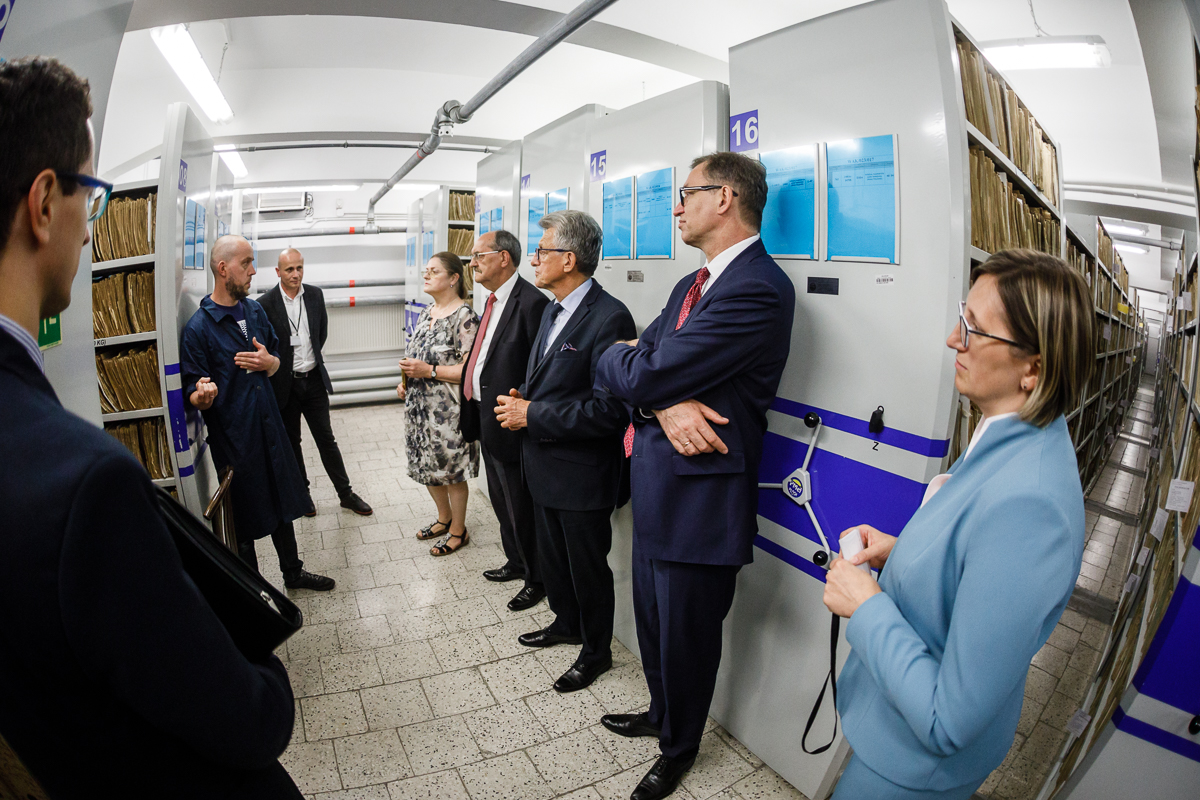 W dalszej części wizyty goście odwiedzili pracownię digitalizacji, gdzie dowiedzieli się więcej o programie cyfryzacji zasobu Instytutu, oraz pracownię konserwacji dokumentów, której pracownicy na przykładzie aktualnie opracowywanych dokumentów – m.in. pozyskanych w ramach projektu Archiwum Pełne Pamięci – omówili zasady zabezpieczania i konserwacji archiwaliów. W pracowni goście mogli także zobaczyć przygotowane do zabiegów konserwatorskich egzemplarze przejętego do zasobu Instytutu „Dziennika Związkowego”.