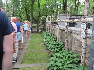 W wakacje odbyły się trzy spotkania (7 i 29 lipca oraz 11 sierpnia br.). Po jednej z najstarszych warszawskich nekropolii oprowadziła dr Anna Maria Adamus z Oddziałowego Biura Edukacji Narodowej IPN w Warszawie. Uczestnicy mieli możliwość wysłuchania nietypowych wykładów o historii Polski po 1918 r. Zwiedzanie grobów i pomników było okazją do głębszego zrozumienia najważniejszych wydarzeń w naszych najnowszych dziejach. Podczas spaceru 29 lipca uczestnicy odwiedzili przede wszystkim groby bohaterów Powstania Warszawskiego, a 11 sierpnia mogiły żołnierzy poległych w wojnie polsko-bolszewickiej.