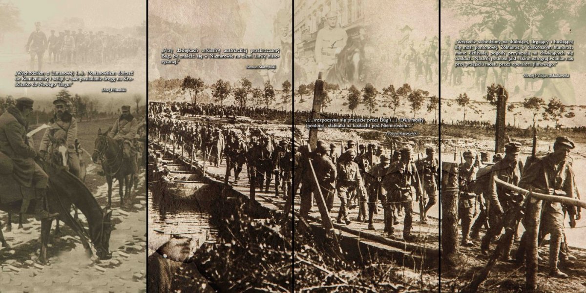 Józef Piłsudski, który w chwili wybuchu I wojny światowej nie chciał dopuścić, by „na szalach losów, ważących się nad naszymi głowami, na szalach, na które miecze rzucono, zabrakło polskiej szabli”, doprowadził do podniesienia sprawy polskiej do poziomu zagadnień europejskich. Ponieważ przewidział już znacznie wcześniej, że pierwszym zaborcą, który odpadnie z gry, będzie carska Rosja, pobita przez państwa centralne, tj. Austro-Węgry i Niemcy, które później ulegną koalicji anglo-francuskiej (lub anglo-amerykańsko-francuskiej), wskazał kierunek, w którym mieli podążać jego żołnierze.