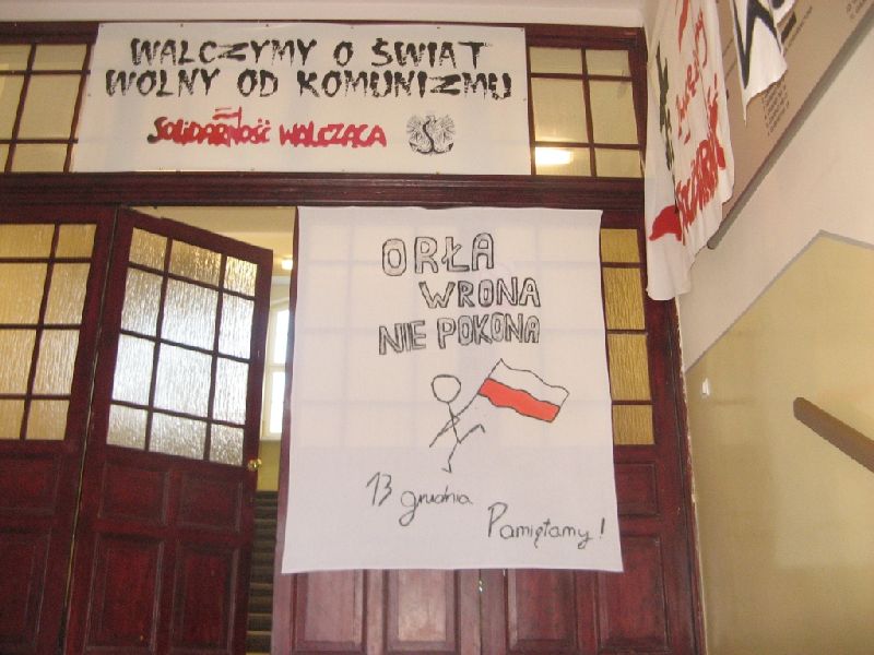 Wystawa była elementem uroczystości związanych z rocznicą wprowadzenia stanu wojennego. Wystrój szkoły przypominał wydarzenia sprzed 29 lat, a uczniowie wysłuchali wykładów przygotowanych przez pracownika gorzowskiej delegatury IPN Jarosława Palickiego i dyrektora Archiwum Państwowego dr. Dariusza Rymara.