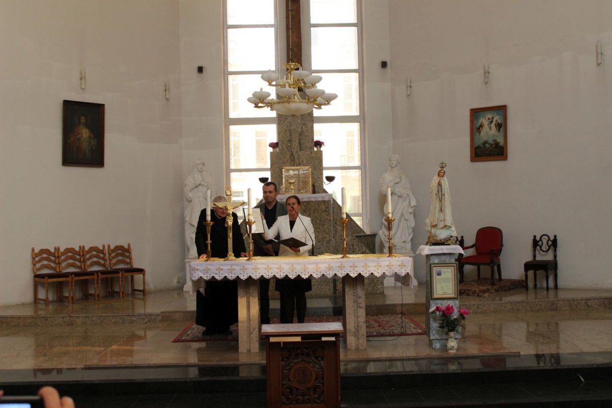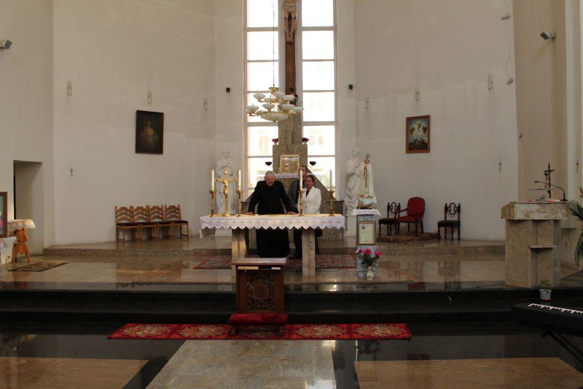 Już tego samego dnia po południu nasza grupa połączyła się z oficjalną delegacją przedstawicieli Ambasady RP w Moskwie, przedstawicieli Policji i Straży Granicznej i wspólnie udaliśmy się do Tweru, gdzie w kościele p.w. Przemienienia Pańskiego odbyło się spotkanie z proboszczem parafii, ks. Markiem Tacikowskim. Ks. Marek Tacikowski od wielu lat opiekuje się Polskim Cmentarzem Wojennym w Miednoje oraz przybywającymi tam pielgrzymami. Przedstawicielka IPN Karolina Kolbuszewska wręczyła ks. Tacikowskiemu okolicznościowy list Prezesa IPN dr. Jarosława Szarka, w którym znalazły się podziękowania za dotychczasową ciężką pracę i podkreślenie znaczenie księdza Marka jako ambasadora polskiej pamięci.