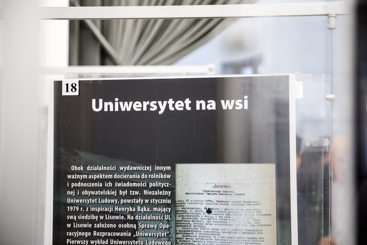 Chciałem podziękować za możliwość prezentacji tutaj tej wystawy – powiedział podczas otwarcia zastępca prezesa IPN dr Mateusz Szpytma. – Ze strony Instytutu Pamięci Narodowej nie jest to ostatnie słowo. Prezes Jarosław Szarek zapowiedział wydanie teki edukacyjnej dla szkół, obejmującej okres od PSL-u do Solidarności Rolników Indywidualnych.