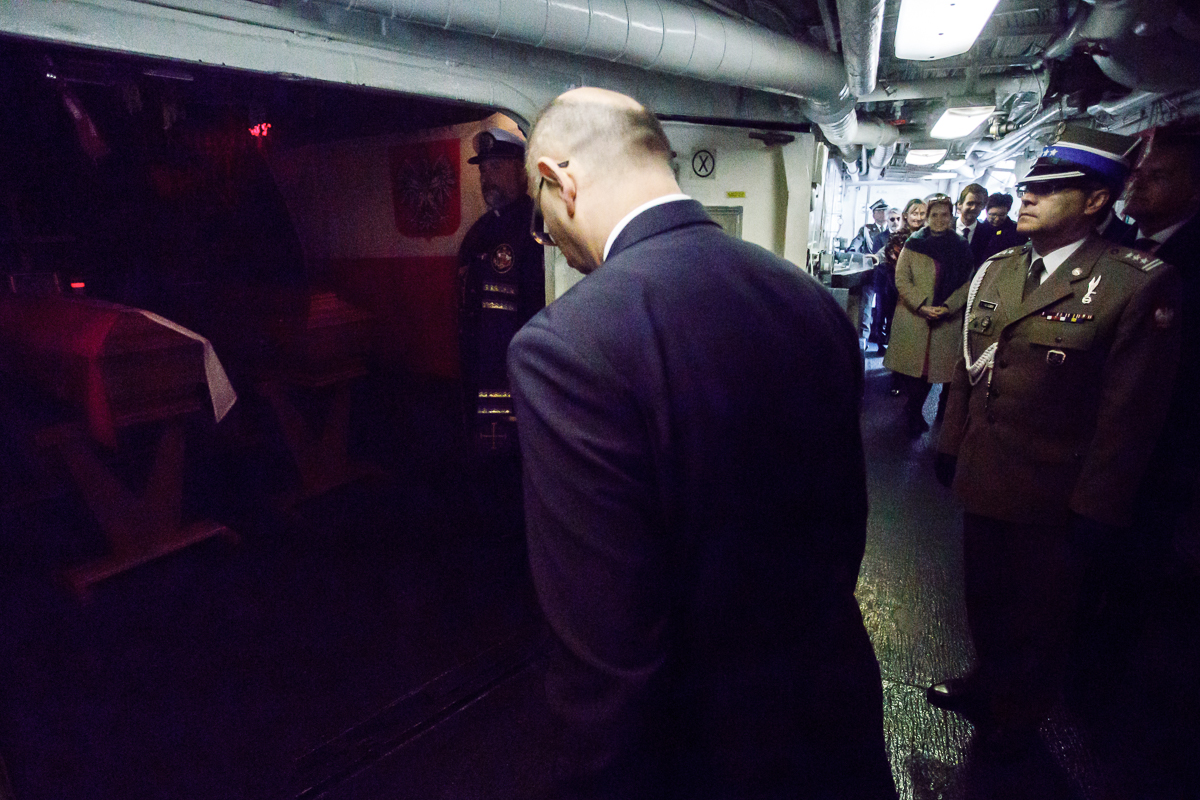 ok. godz. 15.00 – powitanie ORP Kościuszko z trumnami adm. floty Józefa Unruga i Jego Małżonki śp. Zofii Unrug