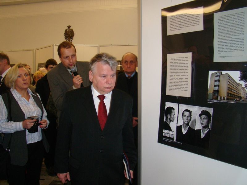 Wystawa po raz pierwszy zaprezentowana została w Muzeum Tradycji Niepodległościowych w Łodzi 4 października 2001 r. i była to pierwsza ekspozycja przygotowana przez pion edukacyjny łódzkiego oddziału Instytutu Pamięci Narodowej. Otwierano ją w kilkunastu miastach regionu, następnie została wypożyczona do stałej prezentacji w dawnym areszcie UB – dzisiejszym gmachu Muzeum Regionalnego w Radomsku. Pierwotnie składała się z fotografii, dokumentów, filmu z procesów Stanisława Sojczyńskiego i Jana Małolepszego oraz pamiątek pochodzących z archiwum łódzkiego oddziału IPN, Muzeum w Radomsku, Muzeum Tradycji Niepodległościowych w Łodzi, Wytwórni Filmów Dokumentalnych i Fabularnych w Warszawie, Ogólnokrajowego Związku byłych Żołnierzy Konspiracyjnego Wojska Polskiego i zbiorów prywatnych.
