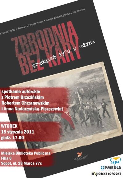W dniu 18 stycznia w Filii nr 8 Miejskiej Biblioteki Publicznej w Sopocie (przy ul. 23 Marca 77c) odbyło się spotkanie z autorami albumu „Zbrodnia bez kary. Grudzień ’70 w Gdyni. Przebieg wydarzeń – represje – walka o prawdę” – Piotrem Brzezińskim, Robertem Chrzanowskim oraz Anną Nadarzyńską-Piszczewiat (album ukazał się w grudniu zeszłego roku). Program spotkania zawierał krótki referat oraz prezentację multimedialną.