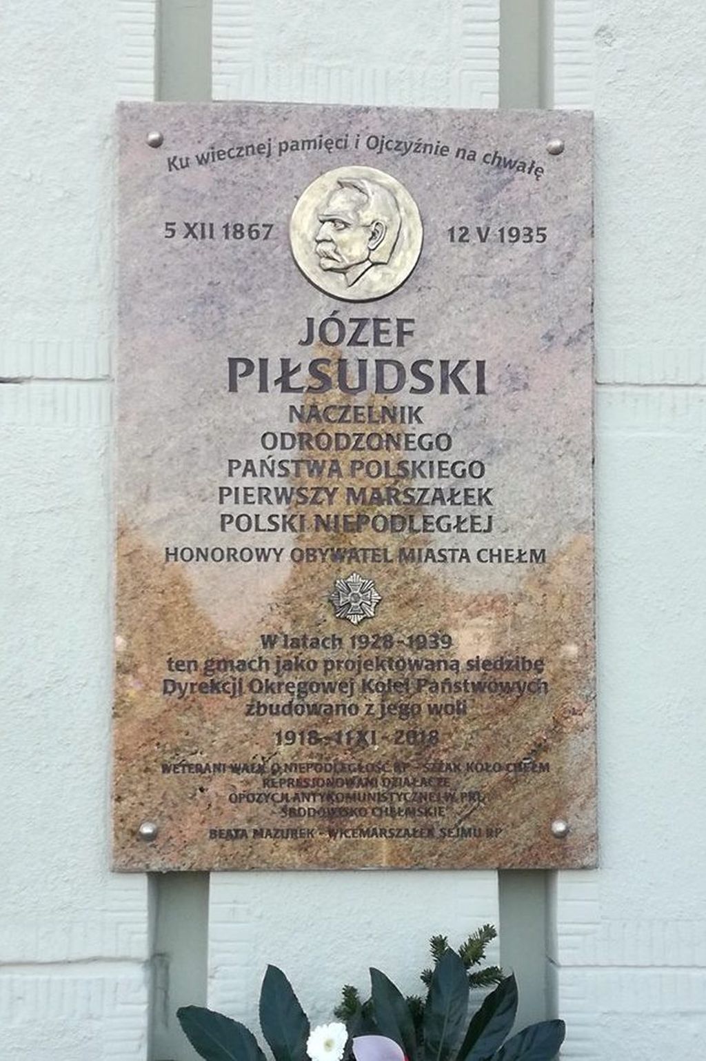 6 października w Chełmie została odsłonięta tablica pamięci marszałka Józefa Piłsudskiego na gmachu dawnej Dyrekcji Okręgowej Kolei Państwowych przy placu Niepodległości 1. To właśnie Piłsudski zdecydował o przeniesniu tego urzędu z Radomia do Chełma i budowie okazałego budynku przeznaczonego dla tej instytucji. Niestety, choć gmach powstał, to z powodu wybuchu II wojny światowej urząd nie został przeniesiony.