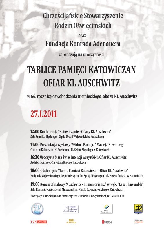 Oddział Instytutu Pamięci Narodowej w Katowicach, Urząd Marszałkowski Województwa Śląskiego, Chrześcijańskie Stowarzyszenie Rodzin Oświęcimskich wraz z Fundacją Konrada Adenauera w Polsce zorganizowały konferencję historyczną „Katowiczanie – ofiary KL Auschwitz”, która odbyła się 27 stycznia 2011 r. w Sali Sejmiku Śląskiego – Śląskiego Urzędu Wojewódzkiego w Katowicach (ul Jagiellońska 25). Konferencja towarzyszyła uroczystościom zorganizowanym w 66. rocznicę oswobodzenia niemieckiego obozu KL Auschwitz pod patronatem honorowym śp. dr. hab. Janusza Kurtyki – Prezesa Instytutu Pamięci Narodowej oraz prof. dr. hab. Andrzeja Kunerta – Sekretarza Rady Ochrony Pamięci Walk i Męczeństwa.