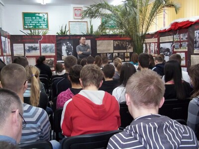W dniu 19 stycznia br. pracownik OBEP IPN w Białymstoku Krzysztof Jodczyk przeprowadził zajęcia edukacyjne dla uczniów Zespołu Szkół nr 9 w Białymstoku w oparciu o wystawę pt. „Sowiecka agresja 17 września 1939 r. na ziemiach Polski północno-wschodniej”. W zajęciach uczestniczyli uczniowie pięciu klas z XIV Publicznego Gimnazjum im. Ryszarda Kaczorowskiego oraz sześciu klas XIV Liceum Ogólnokształcącego im. Ryszarda Kaczorowskiego.