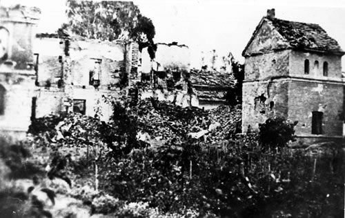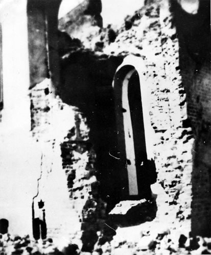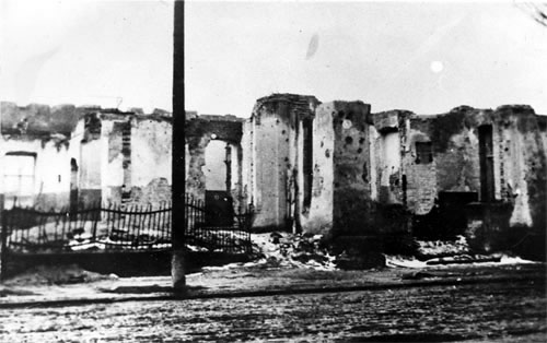 Ruiny Szpitala Wszystkich Świętych w Wieluniu po zbombardowaniu go przez lotnictwo hitlerowskie w dniu 1 września 1939 - widok od strony zachodniej |