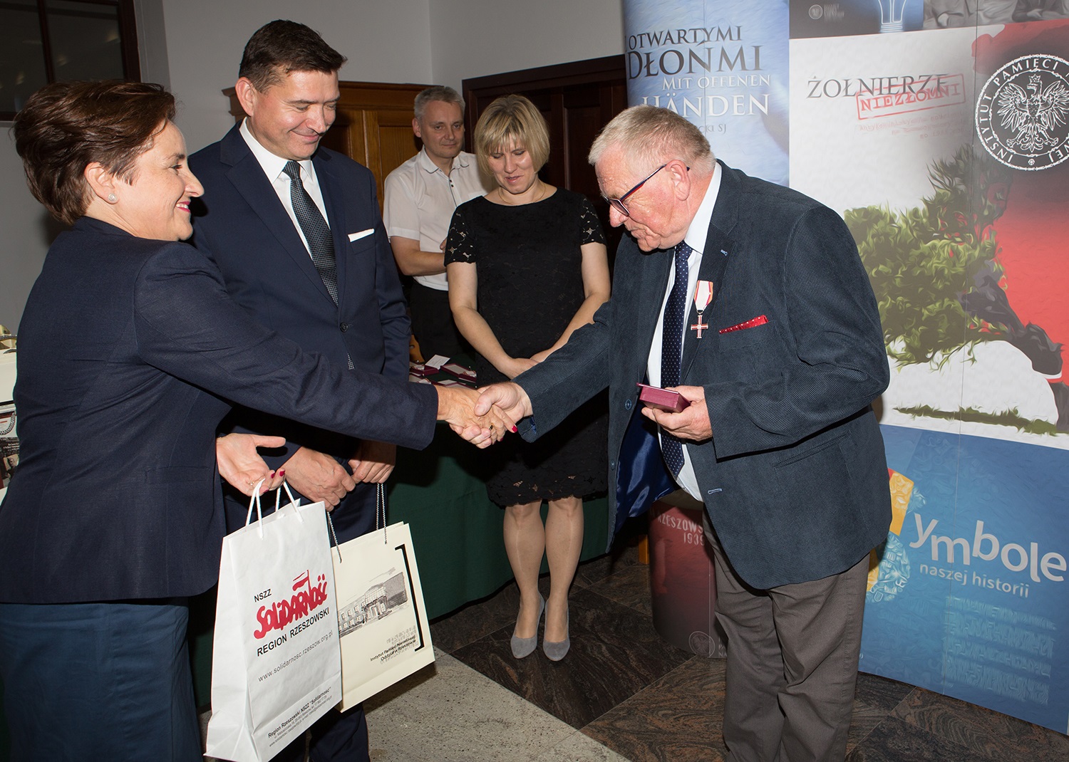 Dr Mateusz Szpytma wiceprezes IPN w imieniu prezydenta RP wręczył w Rzeszowie odznaczenie państwowe KWiS działaczom opozycji antykomunistycznej. -