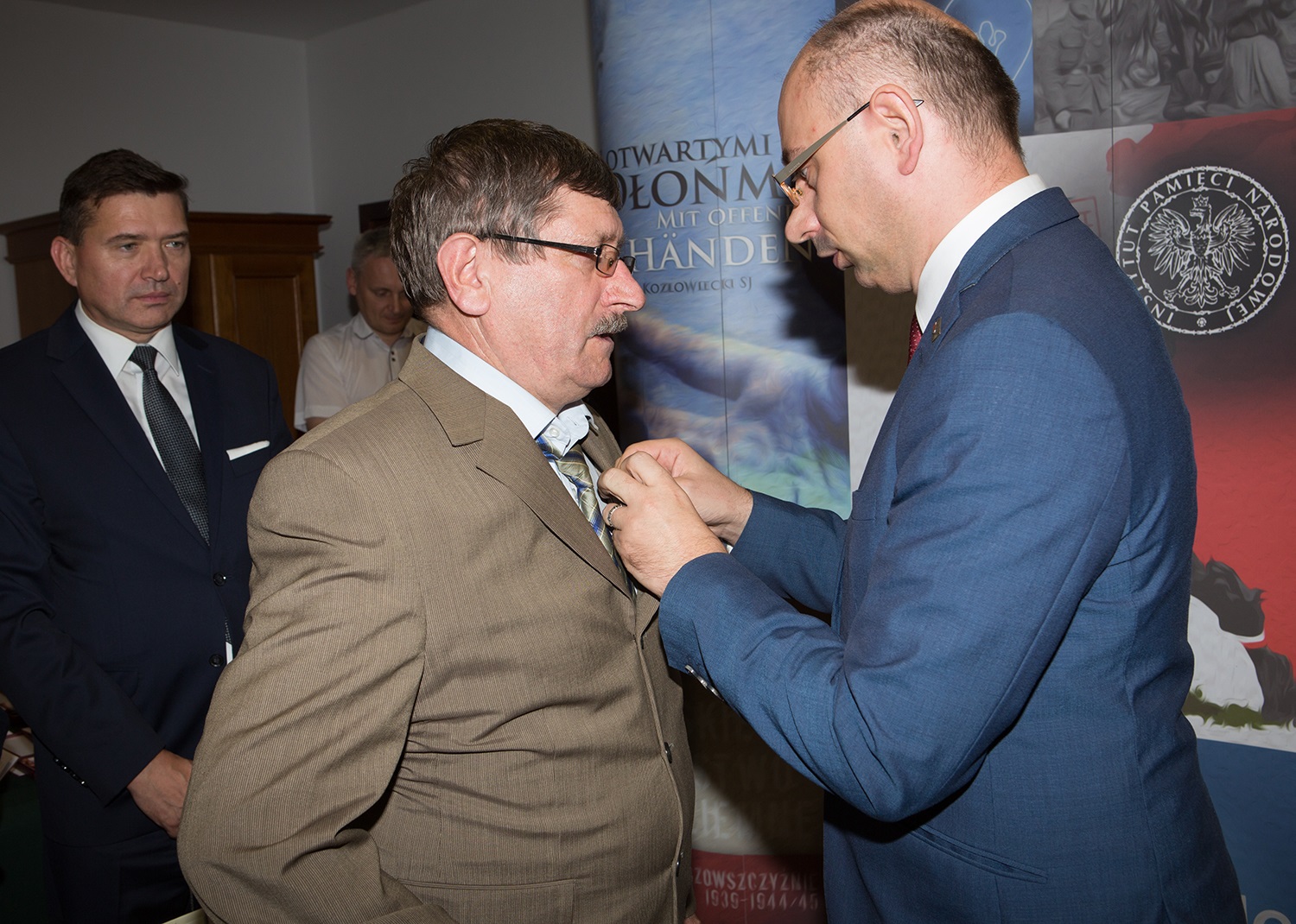 Dr Mateusz Szpytma wiceprezes IPN w imieniu prezydenta RP wręczył odznaczenie państwowe KWiS panu Ireneuszowi Janowi Materze. -