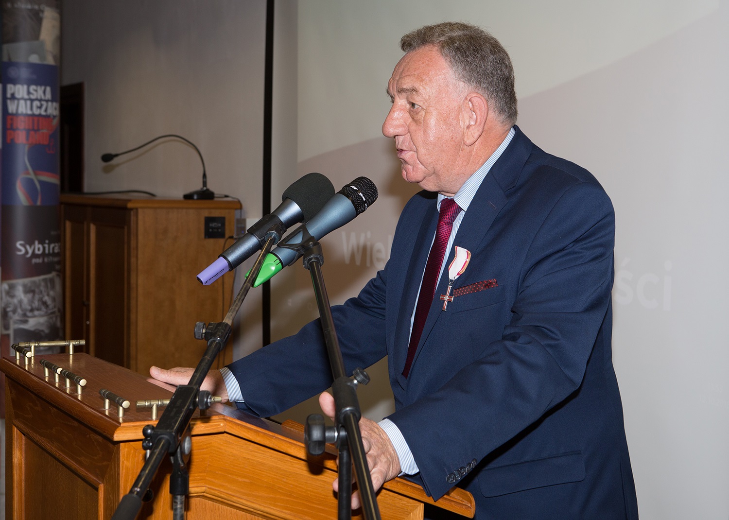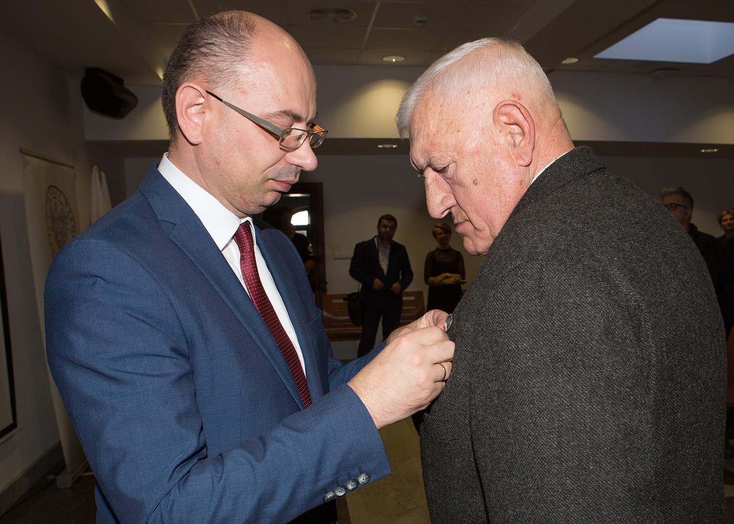 Dr Mateusz Szpytma wiceprezes IPN w imieniu prezydenta RP wręczył odznaczenie państwowe KWiS panu Józefowi Andrzejowi Szylerowi. -