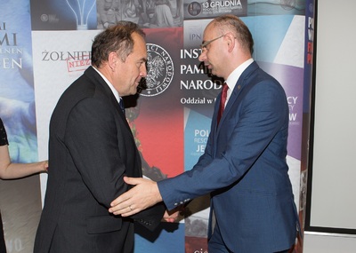 Dr Mateusz Szpytma wiceprezes IPN w imieniu prezydenta RP wręczył odznaczenie państwowe KWiS pośmiertnie panu Zbigniewowi Lemańczykowi, odznaczenie odebrała żona pani Danuta Lemańczyk.Dr Mateusz Szpytma -