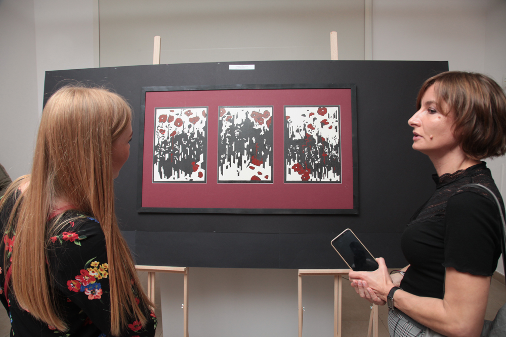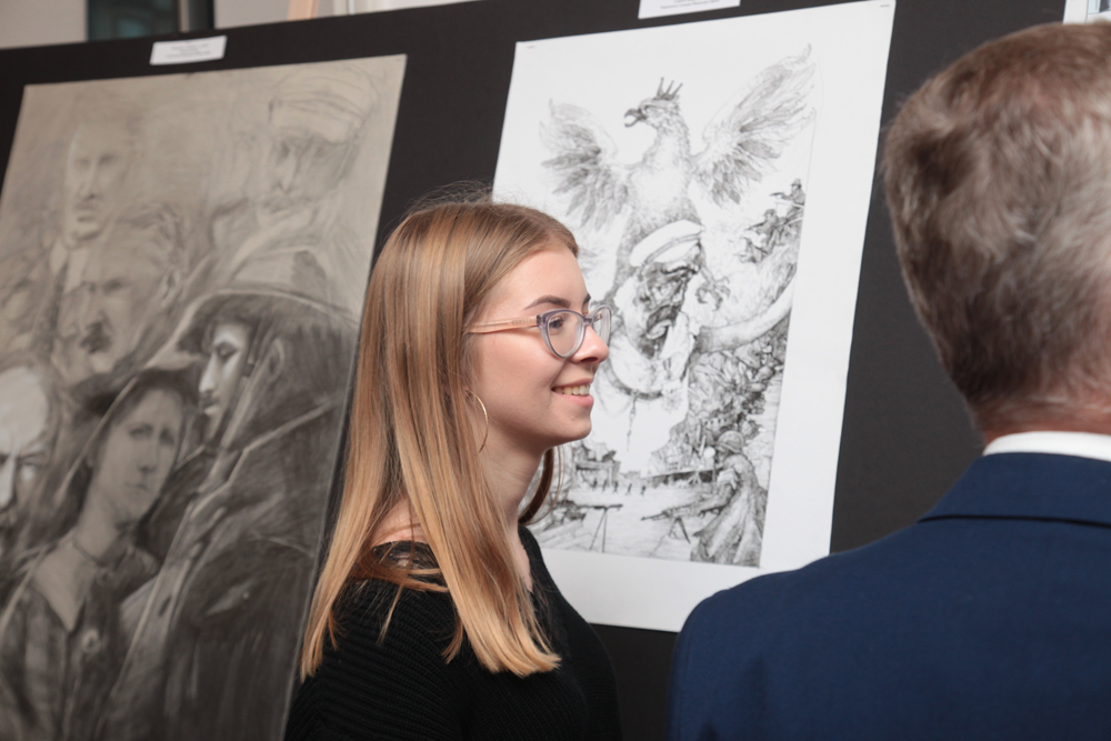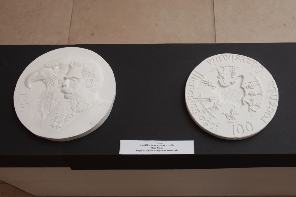 Na wystawie znalazły się prace dyplomowe uczniów szkół plastycznych – laureatów ogólnopolskiego konkursu ogłoszonego z okazji setnej rocznicy odzyskania przez Polskę niepodległości.