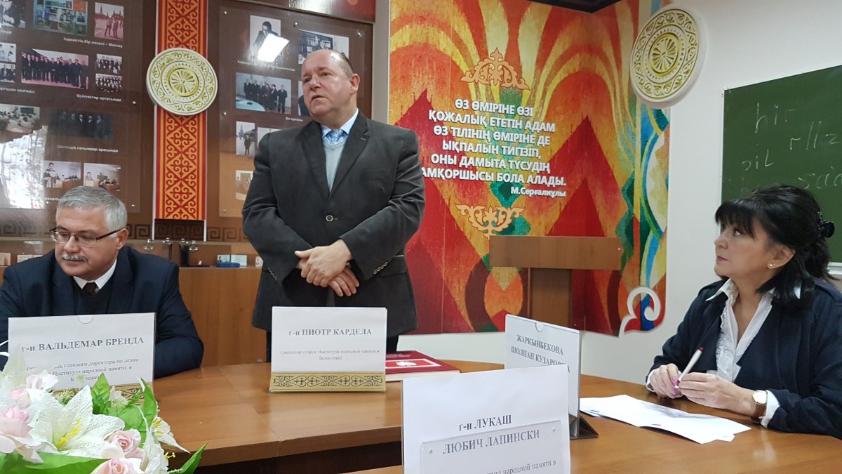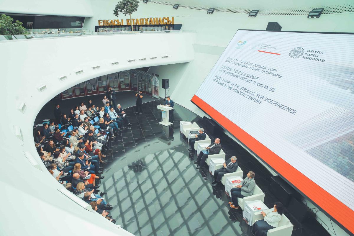 W dniu 8 października br. w bibliotece prezydenckiej w Astanie – stolicy Kazachstanu, ambasador Rzeczypospolitej Polskiej prof. dr hab. Selim Chazbijewicz oraz dyrektor Oddziału IPN w Białymstoku dr hab. Piotr Kardela dokonali uroczystego otwarcia wystawy „Dla Niepodległej. Tatarzy w walce o wolną Polskę w XVIII–XX wieku”. Autorem ekspozycji jest dr Łukasz Lubicz-Łapiński z białostockiego oddziału Instytutu. Podczas uroczystości otwarcia wystawy rząd kazachski reprezentował wiceminister spraw zagranicznych Republiki Kazachstanu Roman Wasilenko. W otwarciu ekspozycji uczestniczyli także ambasadorzy: Ukrainy, Gruzji, Czech, I sekretarz ambasady Arabii Saudyjskiej, sekretarz ambasady USA, I sekretarz ambasady Azerbejdżanu. Otwarcie wystawy IPN stało się okazją do spotkania delegacji IPN z Polakami mieszkajacymi w Astanie oraz z przedstawicielami miejscowego środowiska naukowego i akademickiego. Otwarcie ekspozycji poprzedziła sesja, którą zainaugurował dyrektor biblioteki prezydenckiej w Astanie Rakhimzhanov Amerkhan Muratpekovich. W czasie spotkania głos zabrali m.in.: posiadający korzenie tatarskie ambasador prof. dr hab. Selim Chazbijewicz, uprzednio związany ze środowiskiem naukowym Gdańska i Olsztyna oraz miesięcznikiem „Debata”, poeta, autor licznych publikacji politologicznych, który podkreślił wagę uroczystości odbywającej się w setną rocznicę odzyskania przez Polskę niepodległości; dyrektor Oddziału IPN w Białymstoku dr hab. Piotr Kardela, który zaprezentował treść listu Prezesa IPN dr. Jarosława Szarka do uczestników spotkania, kreślący zasługi Tatarów w dziele odzyskania przez Polskę niepodległości; zastępca dyrektora BEN IPN dr Waldemar Brenda, który mówił o polskich dążeniach wolnościowych w XX w., nawiązujący też do walki Kazachstanu o niepodległość; przedstawiciele społeczności tatarskiej w Kazachstanie, w tym poseł Sayapova Zukhra Aleutdinovna reprezentująca Tatarsko-Baszkirskie Centrum Kultury. Spotkaniu towarzyszyło duże zainteresowanie radia, prasy i telewizji, które jeszcze tego samego dnia relacjonowały całość wydarzenia.