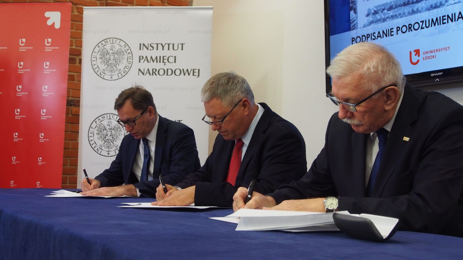 Stronami porozumienia są Marek Michalik, prezes Zarządu i Agnieszka Sygitowicz, wiceprezes Zarządu z ŁSSE S.A., finansującej projekt badań, jego Magnificencja prof. dr. hab. Antoni Różalski, rektor UŁ oraz dr Jarosław Szarek, Prezes Instytutu Pamięci Narodowej.