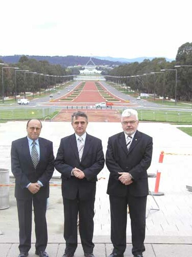 Andrew Bilski, Prof. Leon Kieres, Aleksander Gancarz, Kanbera, 20.10.2004