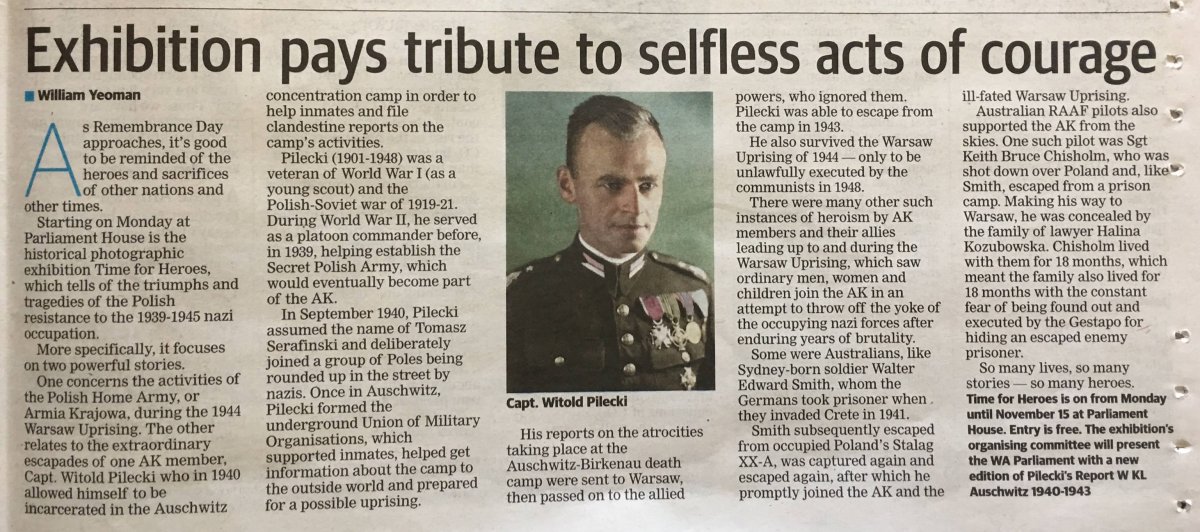 W poczytnej australijskiej gazecie „The Weekend West” ukazał się artykuł o rotmistrzu Witoldzie Pileckim