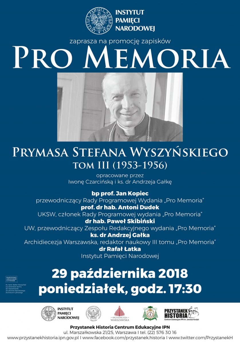 W Centrum Edukacyjnym IPN im. Janusza Kurtyki „Przystanek Historia” odbyła się promocja III tomu Pro memoria – dzienników prymasa Stefana Wyszyńskiego.