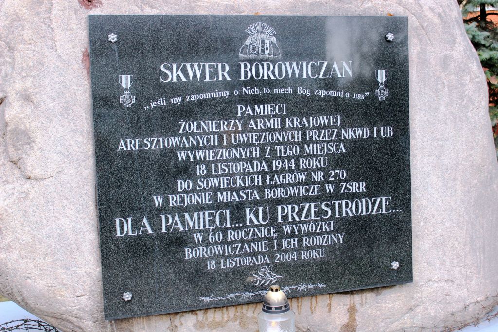 Uroczystości upamiętniające martyrologię żołnierzy Polskiego Państwa Podziemnego deportowanych do łagrów NKWD w rejon Borowicz i Swierdłowska rozpoczęły się 26 października od złożenia wiązanek przy tablicy upamiętniającej ofiary wywózek do łagrów NKWD, znajdującej się przy siedzibie SP nr 1 im. ks. S. Konarskiego.