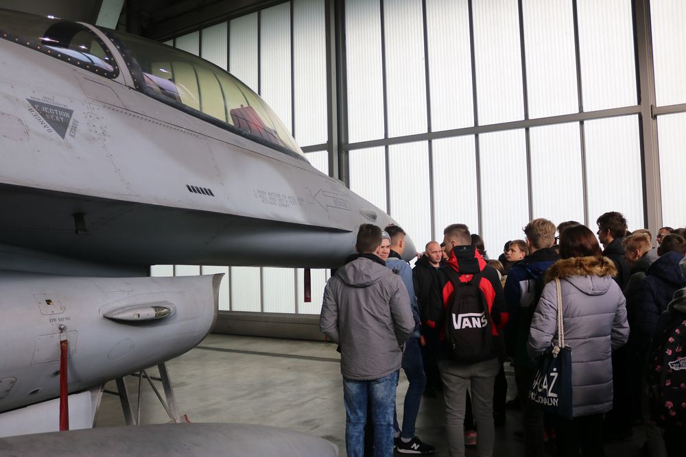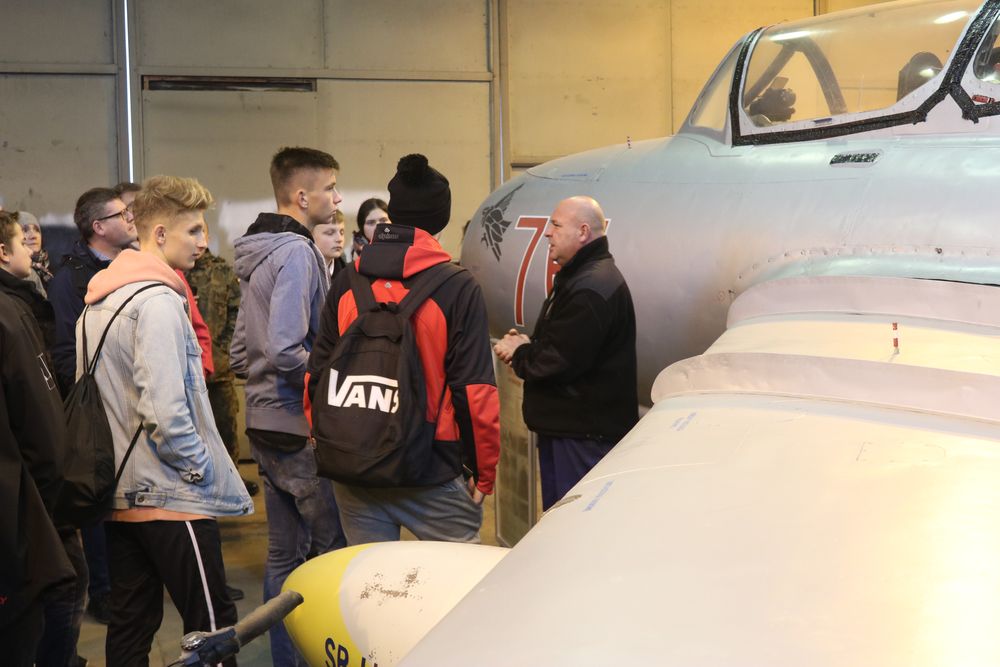 Manewry na szczeście nie przeszkodziły zwiedzaniu i zapoznaniu się z trudami pracy polskich pilotów, a uczestnikom projektu udało się obejrzeć Centrum Szkolenia Spadochronowego oraz hangary, gdzie pięknie prezentowały się „Jastrzębie”.