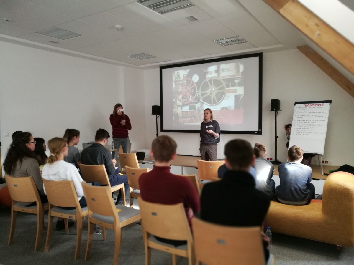 Spotkanie rozpoczęło się od gry integracyjnej dzięki której uczestnicy mogli się lepiej poznać. Następnie laureaci udali się na warsztaty prowadzone przez Łukasza Hrynkiewicza, których tematem była „Historia w filmie dokumentalnym”. Następnie Jarosław Wszędybył i Karolina Śmigiel zapoznali młodzież z techniką folmową Found footage i kwestią praw autorskich. Ostatnim punktem warsztatów były zajęcia dotyczące selekcji materiałów, konstruowania historii i pracy ze scenariuszem.