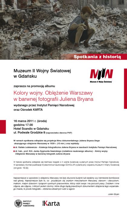 16 marca 2011 r. w hotelu Scandic w Gdańsku (ul. Podwale Grodzkie 9) odbyła się promocja albumu „Kolory wojny. Oblężenie Warszawy w barwnej fotografii Juliena Bryana”. Album został wydany przez Instytut Pamięci Narodowej oraz Ośrodek „Karta”.