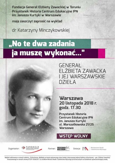 Przystanek Historia – Centrum Edukacyjne IPN im. Janusza Kurtyki zaprasza na wykład dr Katarzyny Minczykowskiej „»No te dwa zadania ja muszę wykonać…”« Gen. Elżbieta Zawacka i jej warszawskie dzieła”.