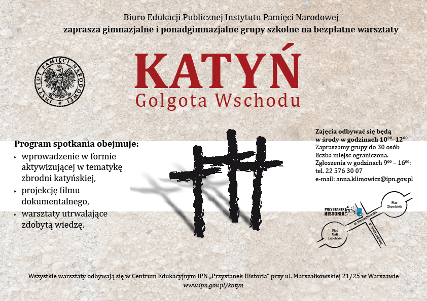 „Katyń. Golgota Wschodu” – warsztaty dla grup gimnazjalnych i ponadgimnazjalnych