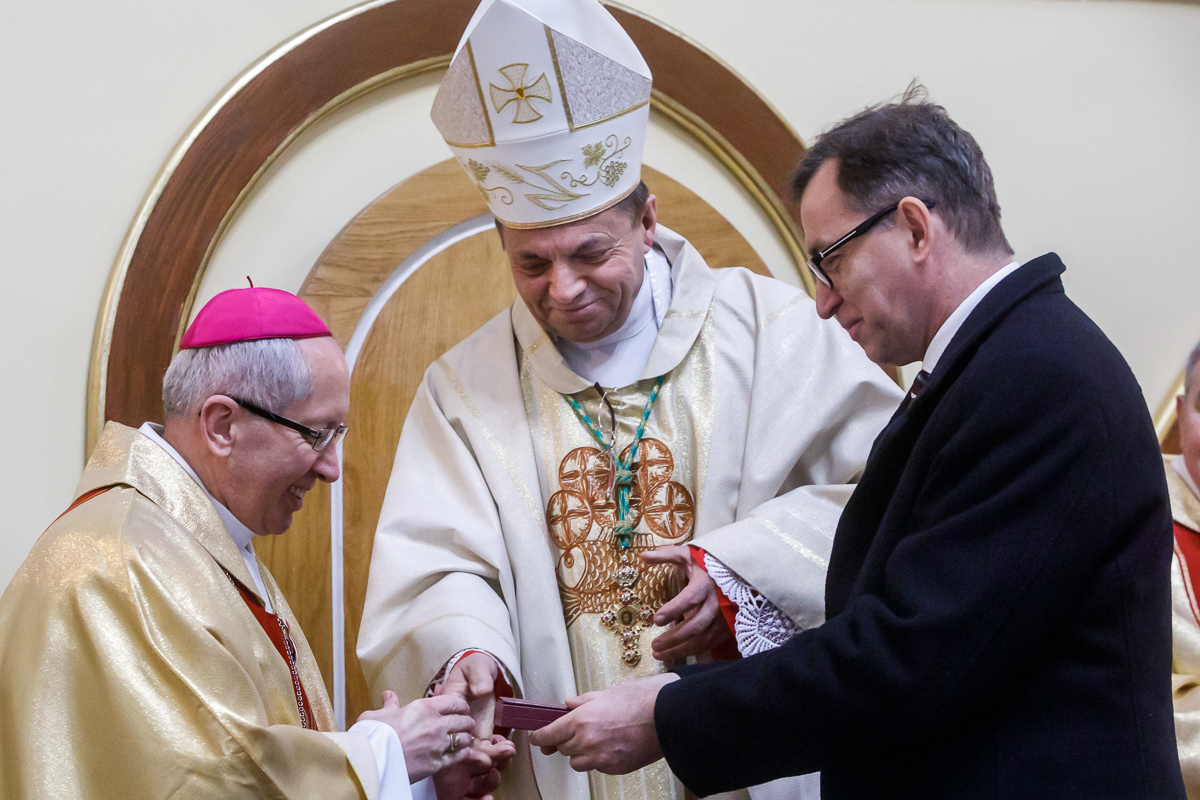 Prezes IPN Jarosław Szarek wręczył przyznany przez Prezydenta RP Krzyż Wolności i Solidarności ks. bp. Janowi Niemcowi, biskupowi pomocniczemu diecezji kamienieckiej.