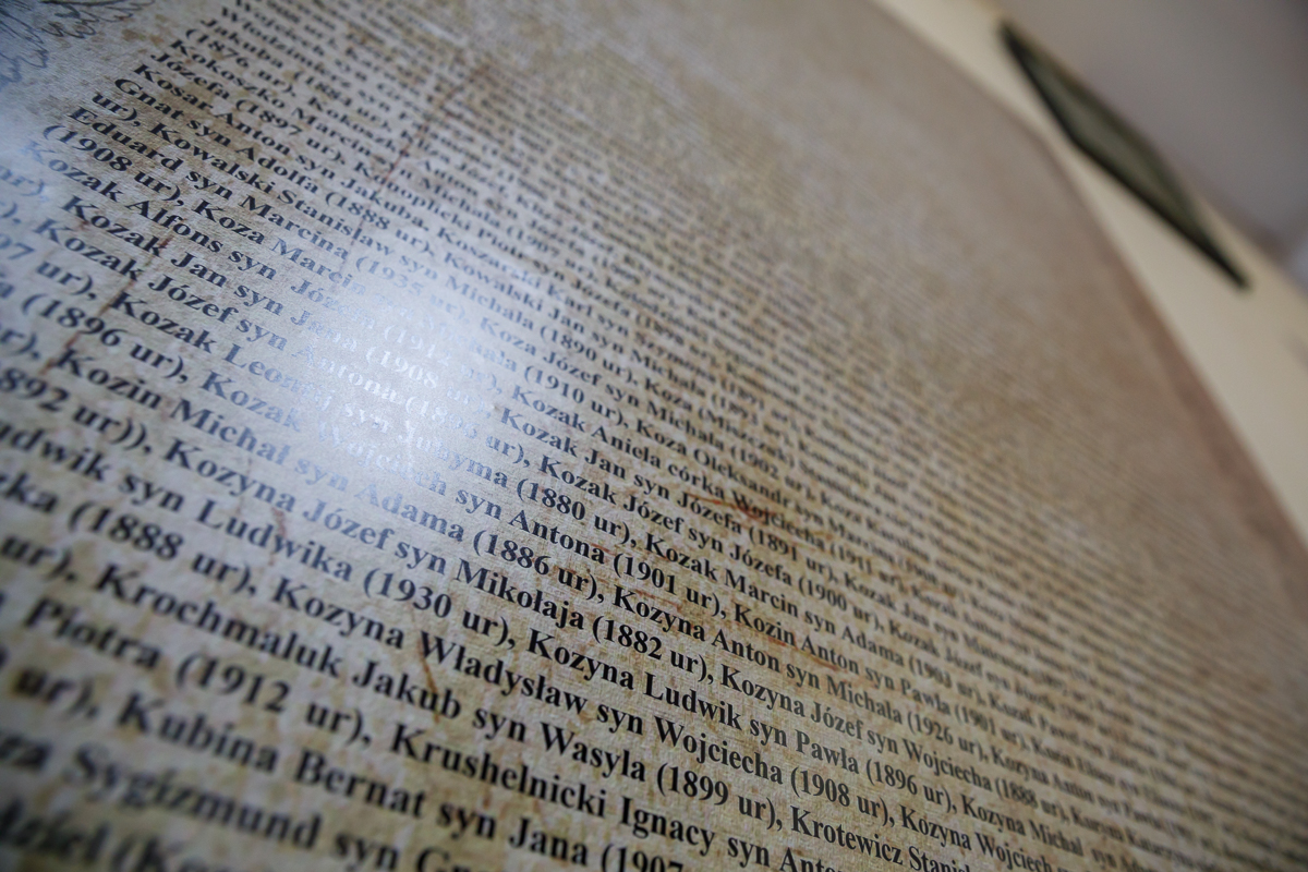 W kaplicy umieszczono tablice z nazwiskami miejscowych ofiar „operacji polskiej” NKWD. Fot. Sławek Kasper (IPN)