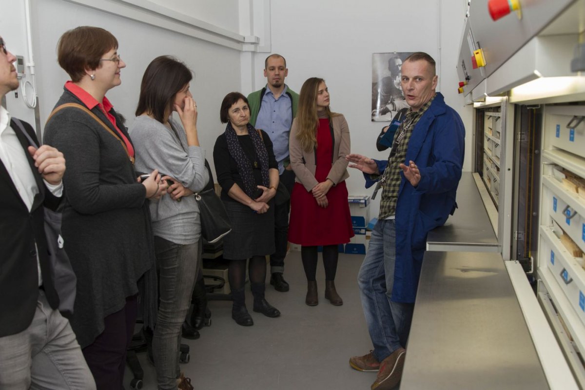 Dziennikarze odwiedzili także jeden z magazynów archiwalnych i pracownię konserwacji dokumentów. Pracownicy Archiwum IPN zaprezentowali gościom wykorzystywany w pracy Archiwum wideokomparator i rotomat. W trakcie zwiedzania padło wiele pytań dotyczących podstawowych zasad przechowywania, zabezpieczania i konserwacji archiwaliów, jak również dostępności zasobu.