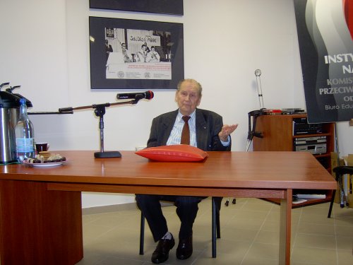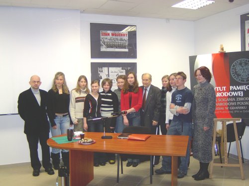 Następnie odbyło się spotkanie ze świadkiem historii. Bohaterem tej części „wędrówki” był Leon Lendzion – członek Polonii gdańskiej, w roku 1939 student Technische Hochschule (Politechniki Gdańskiej), więzień obozów hitlerowskich – Stutthof i Sachsenhausen, a także czynny działacz na rzecz pojednania polsko-niemieckiego. Swoją opowieść pan Leon rozpoczął od dziejów Polonii gdańskiej w Wolnym Mieście Gdańsku. Wojna zastała go w Bydgoszczy – kiedy jednak usłyszał 3 września, że Anglia i Francja zapowiedziały desant przeciwko Niemcom, wrócił do Gdańska w przekonaniu, że jako pierwsze zostaną wyzwolone tereny nadmorskie.