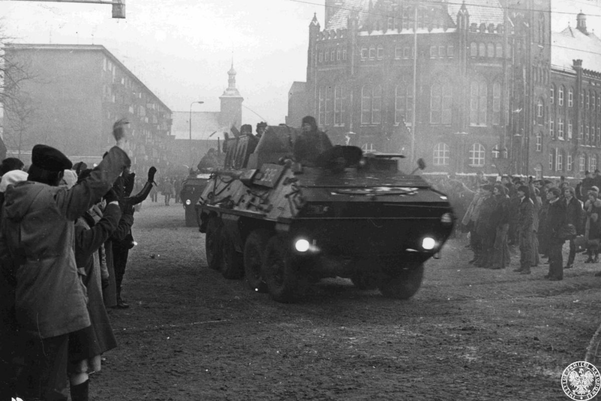 Wojskowe transportery opancerzone na ulicach Gdańska, 15 grudnia 1981 r. IPN Gd 433/5 -