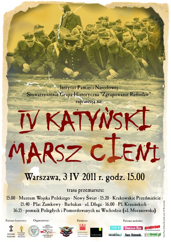 W niedzielę, 3 kwietnia br. przeszedł ulicami Warszawy Katyński Marsz Cieni, współorganizowany przez Instytut Pamięci Narodowej i Stowarzyszenie Grupa Historyczna „Zgrupowanie Radosław”. Patronat honorowy nad imprezą objęły Komitet Katyński oraz Fundacja Golgota Wschodu.