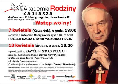 Oddział Instytutu Pamięci Narodowej w Katowicach wraz z Gliwickim Klubem „Gazety Polskiej” zorganizowały autorską prezentację filmu Anny Pietraszek „Zawód: Prymas Polski” z udziałem dr. hab. Jana Żaryna i Anny Rastawickiej. Prezentacja odbyła się 13 kwietnia 2011 r. w Centrum Edukacyjnym im. Jana Pawła II w Gliwicach (ul. Jana Pawła II 5a).