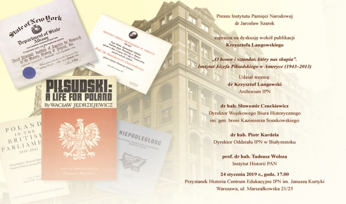 24 stycznia 2019 r. w Centrum Edukacyjnym IPN „Przystanek Historia” im. Janusza Kurtyki w Warszawie odbyła się uroczysta promocja książki Krzysztofa Langowskiego „O honor i sztandar który nas skupia”. Instytut Józefa Piłsudskiego w Ameryce (1943 – 2013). W opartej na bogatych źródłach z zasobu IJPA publikacji autor scharakteryzował środowisko emigracyjne, przedstawił działalność i wieloletni dorobek Instytutu oraz zaprezentował najważniejsze postacie z nim związane.