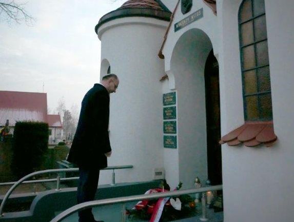 Wiceprezes IPN Mateusz Szpytma przy grobie Wincentego Witosa – Wierzchosławice, 20 stycznia 2019. Fot. Tomasz Kowalski (IPN)