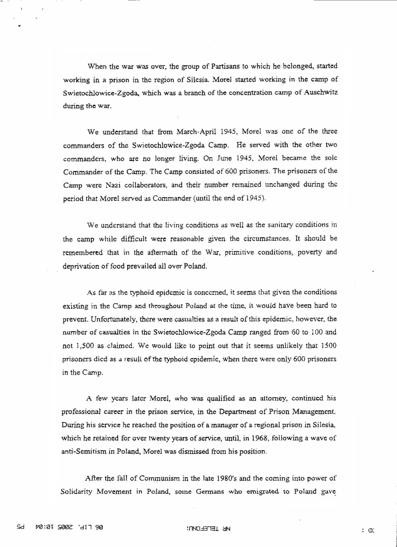 [58] List Salomona Morela do Okręgowej Komisji Badania Zbrodni przeciwko Narodowi Polskiemu w Katowicach z 7 XI 1992, IPN Ka, Akta śledztwa..., k. 78-81, zob. także Obóz Pracy w Świętochłowicach w 1945 roku..., s. 89.