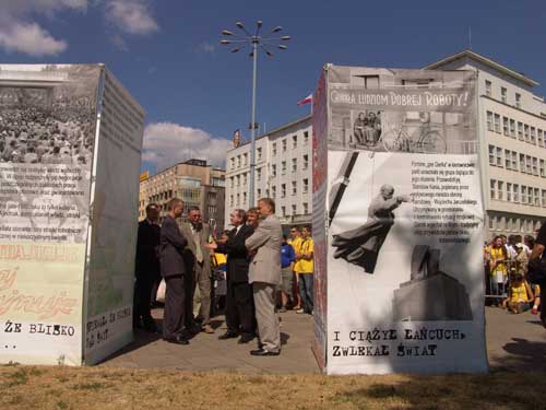Wystawa „Mowa murów” pełni także funkcję łącznika historii i współczesności bardzo dosłownie. Na mapie Gdyni informuje bowiem o wszystkich miejscach, wystawach, terminach spotkań organizowanych w 25. rocznicę powstania Solidarności.
