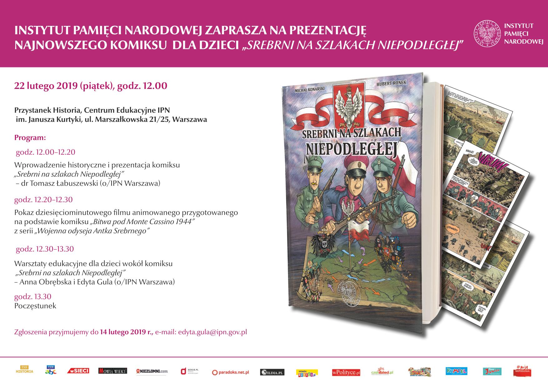 W piątek 22 lutego 2019 r. w Centrum Edukacyjnym IPN im. Janusza Kurtyki w Warszawie zaprezentowany został najnowszy komiks IPN dla dzieci „Srebrni na szlakach Niepodległej”.